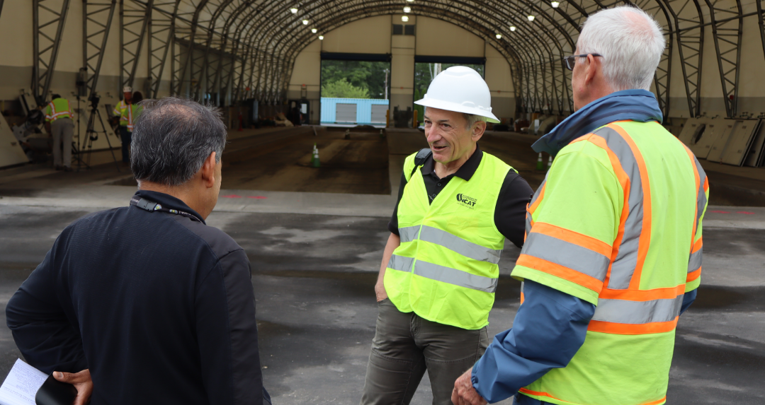 Crews began experimenting with cold central plant recycling (CCPR) at the facility, eventually constructing a series of test strips to be evaluated with special equipment that can emulate the pressure conditions of heavy aircraft as a measure of performance. The fire truck-sized apparatus can be customized to simulate the conditions of several airplane models, with an even more specialized tool inside the National Airport Pavement Test facility at the Hughes Center capable of simulating the pavement stress equal to some of the largest aircraft on earth.